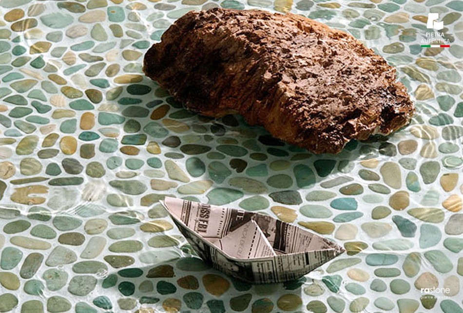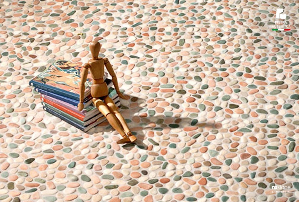 Il paziente lavoro della natura dona ai ciottoli d'oriente un'esotica e primitiva bellezza. Per questo RASTONE ne seleziona le forme e i colori più affascinanti e li monta su rete, per renderne la posa in opera sempre più facile: grazie al sistema interbloccante infatti, si ha la certezza di ottenere una posa "effetto tappeto", senza percepire quindi le fughe. I colori vivaci, le dimensioni selezionate, lo spessore ridotto e la superficie levigata rendono i ciottoli perfetti per rivestimenti e pavimenti d'interno capaci di soddisfare a pieno ogni esigenza del design contemporaneo.