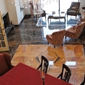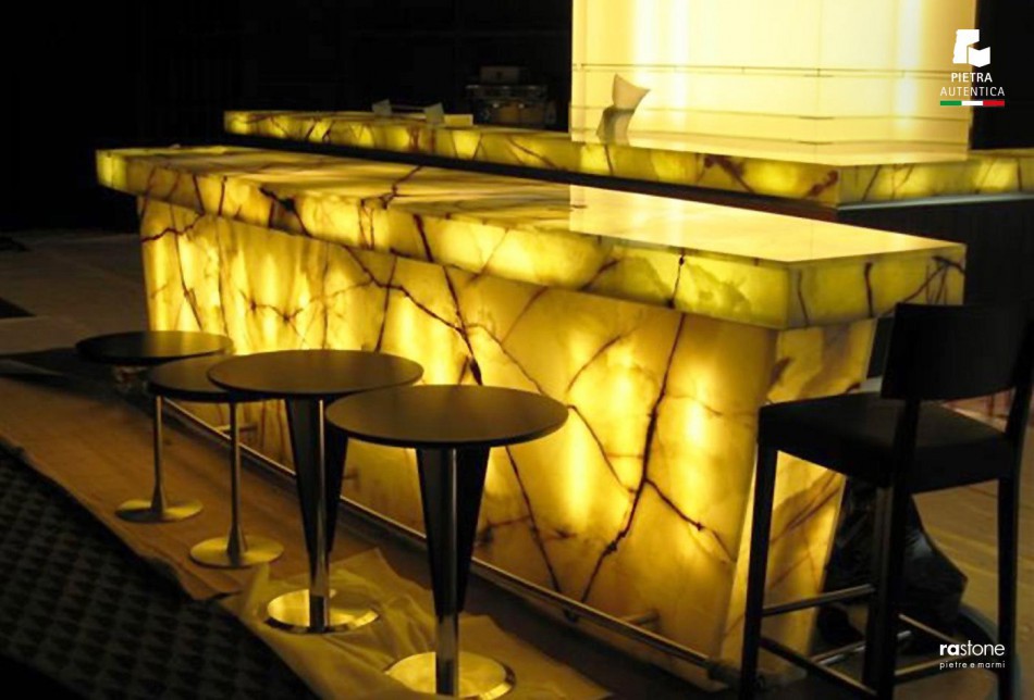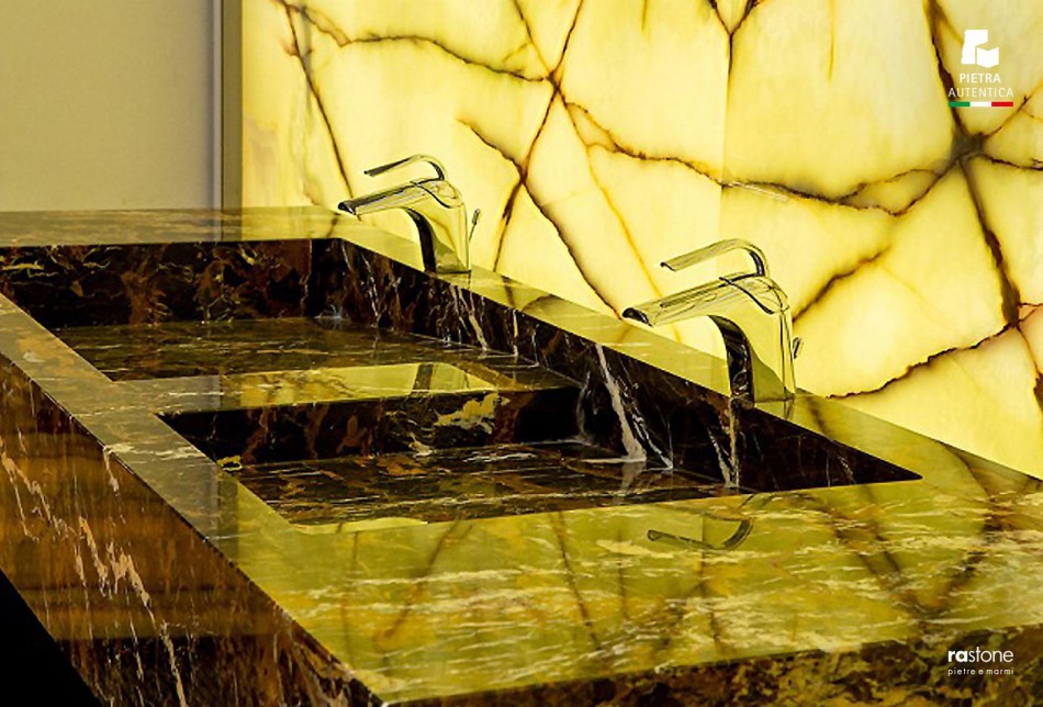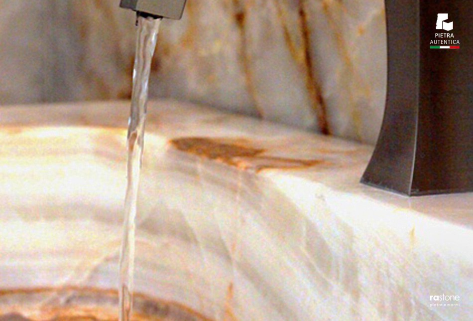 Onice, dal greco "onyks", é chiamato così a causa del suo aspetto che ricorda la superficie "dell'unghia". Roccia ignea composta da quarzo, conquista lo sguardo con splendide colorazioni che variano su tutte le cromie esistenti. L'estetica affascinante e variegata rende ogni lastra di Onice un pezzo unico per toni e venature, per un materiale capace di donare magnificenza a ogni arredamento d'interni, beneficiando spesso di un effetto di retroilluminazione ancora più esclusivo.