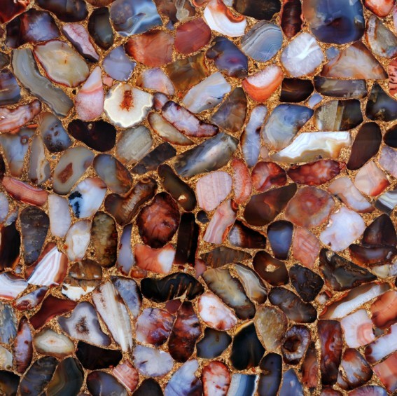 Nelle lastre di semipreziosi sono incastonate gemme assolutamente uniche e inimitabili per rarità, trasparenza, colorazione brillantezza. Quarzo, ametista, agata, occhio di tigre, ematite, diaspro sono solo alcune delle gemme che nelle loro diverse colorazioni e forme vengono lavorate insieme, per dare vita a lastre di grandi dimensioni dal valore assoluto. Un valore che non risiede solo nelle materie prime ma anche nella tecnologia e nelle tecniche di produzione: ecco perché i semipreziosi vengono utilizzati per realizzazioni di altissimo prestigio, come la personalizzazione di intere pareti e la decorazione di tavoli o camini.