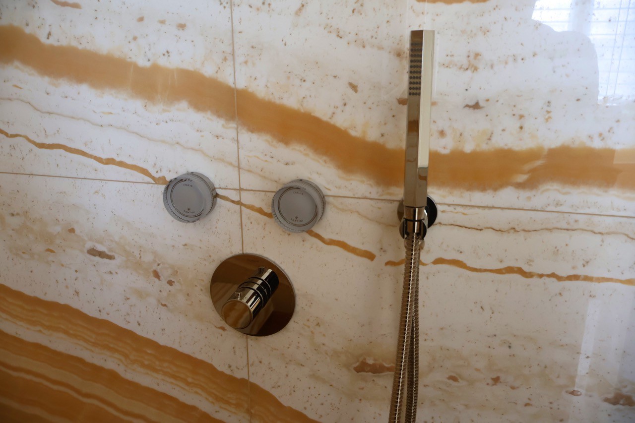 Il bagno diventa così una piccola oasi contemporanea, dove ogni elemento dalle pareti alle nicchie, dai piani lavabo agli inserti decorativi è pensato per esaltare il fascino autentico dell’onice naturale, reso ancora più sorprendente dalla tecnica della macchia aperta.